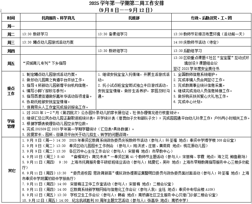 2025学年第一学期第二周工作安排 (9月8日—9月12日)