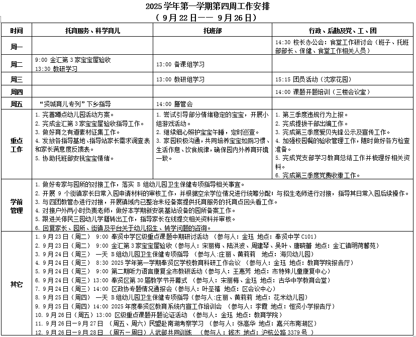 2025学年第一学期第四周工作安排( 9月22日—— 9月26日)