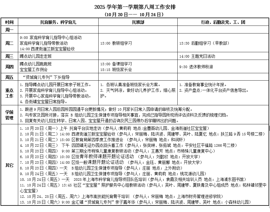 2025学年第一学期第八周工作安排 (10月20日—— 10月24日)
