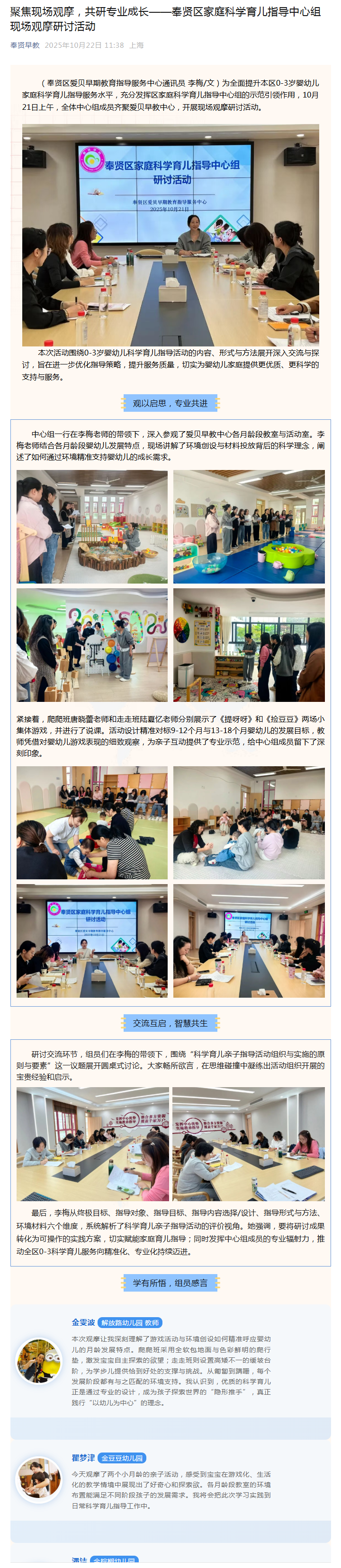 聚焦现场观摩,共研专业成长——奉贤区家庭科学育儿指导中心组现场观摩研讨活动