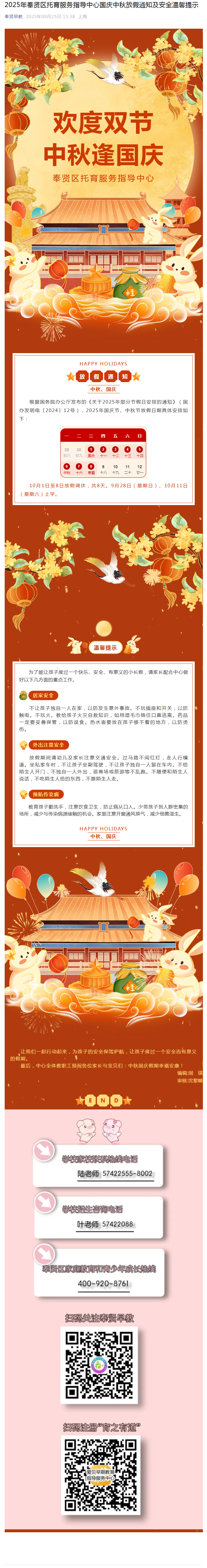 2025年奉贤区托育服务指导中心国庆中秋放假通知及安全温馨提示