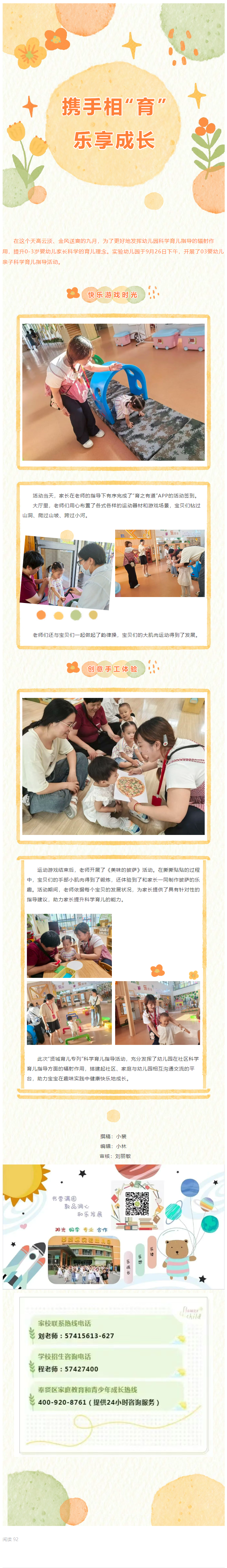 携手相“育”,乐享成长 ——奉贤区“贤城育儿专列”之实验幼儿园科学育儿指导活动