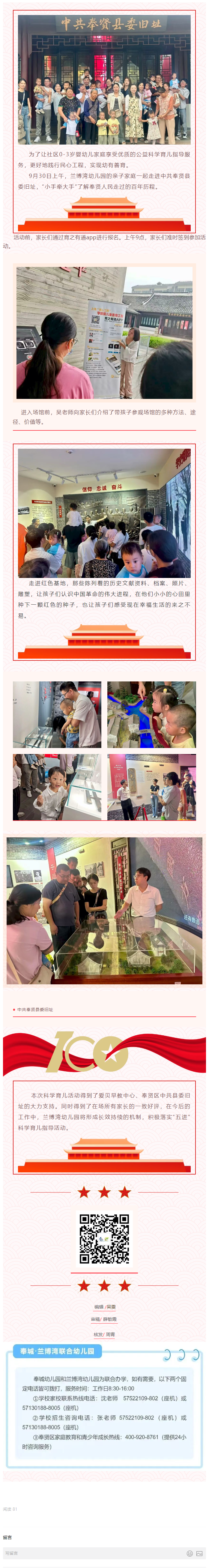 红色传承 科学育儿——“贤城育儿专列”之奉城·兰博湾联合幼儿园科学育儿指导活动